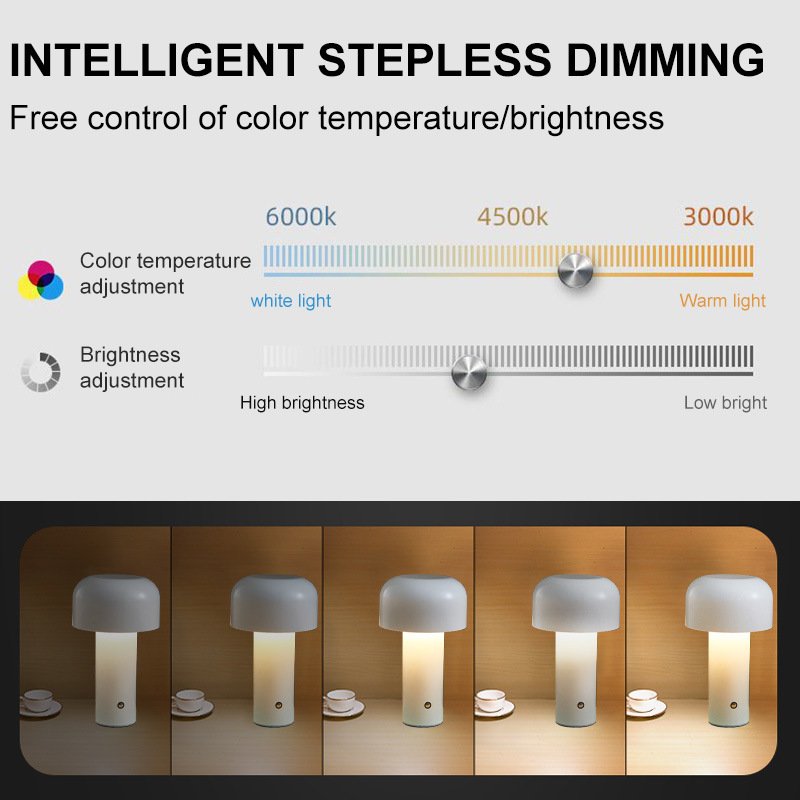 Home > Italian Mushroom Table Lamp Night Light Portable Wireless Touch Rechargeable Desk Light Bedside Table Lamp Bedroom Desktop Decor